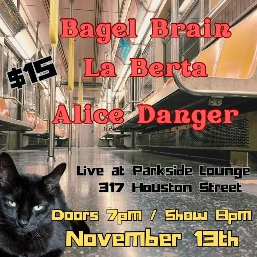 Back to All Events Bagel Brain, La Berta, Alice Danger Monday, November 13, 2023 7:00 PM 11:00 PM Google Calendar ICS