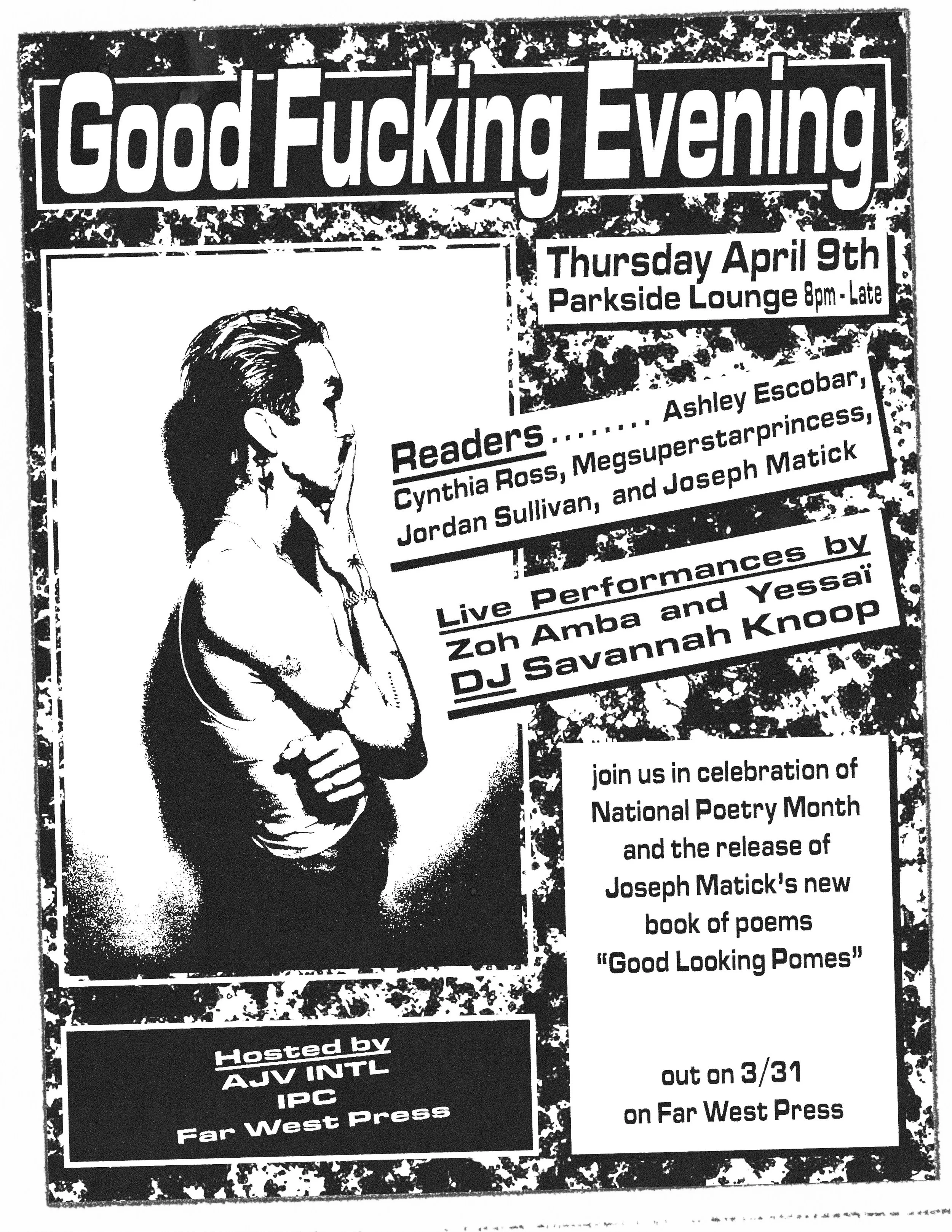 Good Fucking Evening Thursday, April 9, 2026 8:00 PM 11:00 PM Parkside Lounge 317 East Houston Street New York, NY, 10002 United States (map) Google Calendar ICS