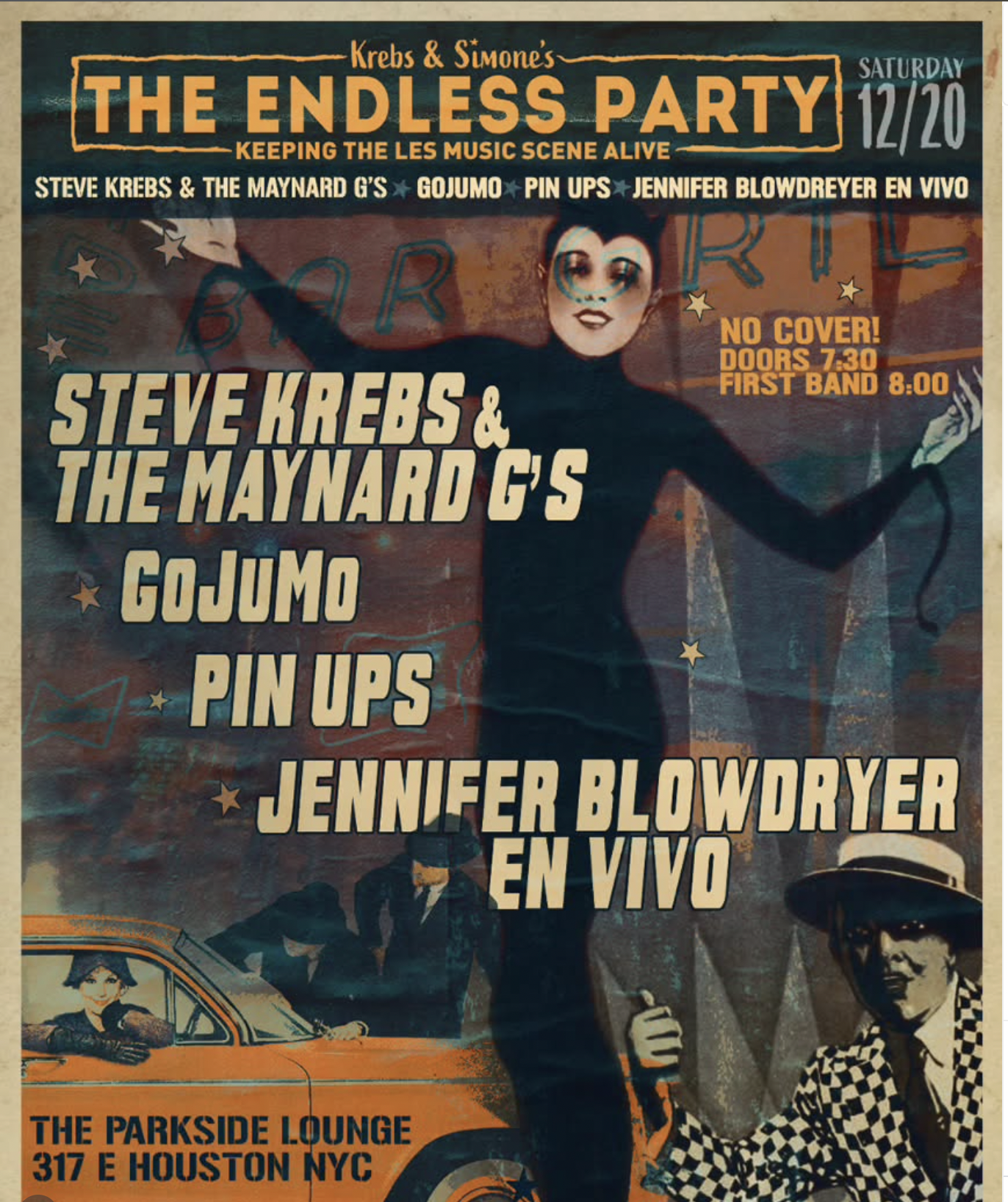 Back to All Events Krebs Endless Party Saturday, December 20, 2025 7:30 PM 7:30 PM Parkside Lounge 317 East Houston Street New York, NY, 10002 United States (map) Google Calendar ICS