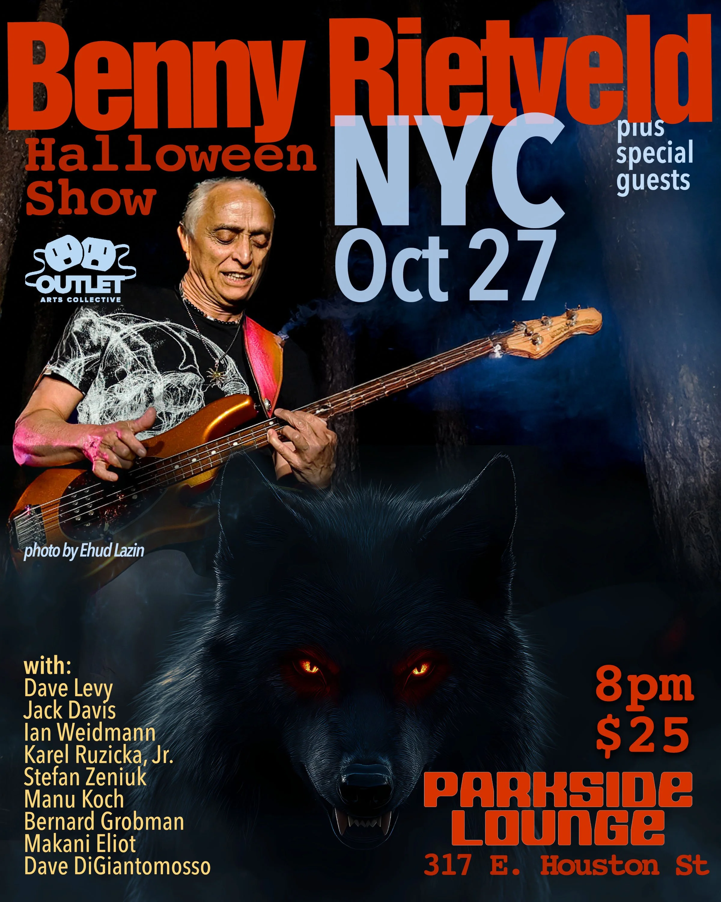 9X Grammy winner Benny Rietveld brings a special Halloween show to NYC. The long time bassist/musical director for Santana will offer up his own brand of Rock, Latin Funk, and Jazz celebrating the Season Of The Witch.