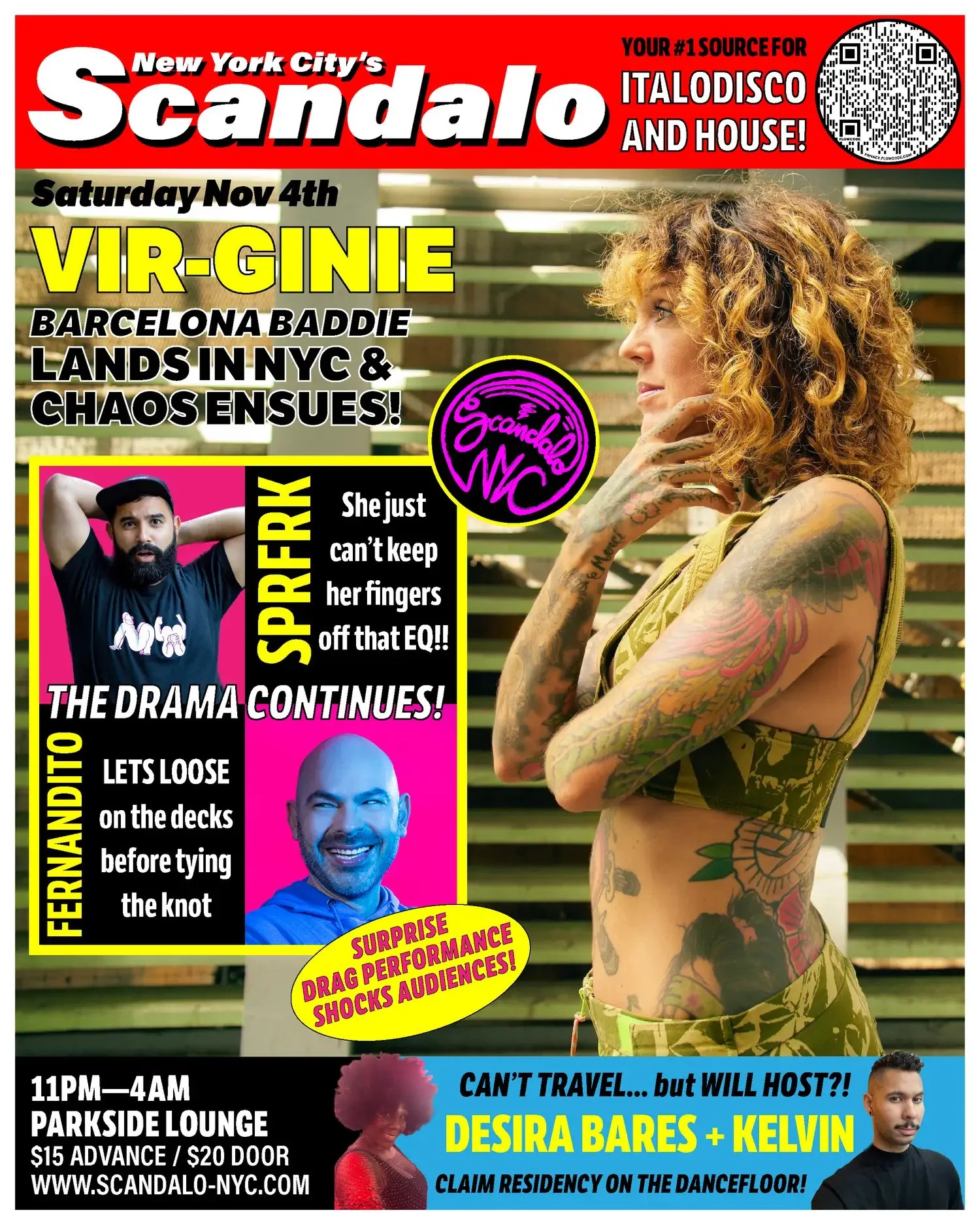 Scandalo NYC is bringing the ultimate Italo Disco & House party to The Parkside Lounge on Friday September 1st, 2023. Get ready to groove to the Signature Scandalo NYC's Style featuring infectious rhythms & sounds of Italo Disco, blended with the grinding beats of Classic House music and catchy Euro Pop. Special Guest DJ Virgine_aka_Vir from Barcelona Spain will take the stage along with residents SPRFRK and fernanDITO, mixing up an unforgettable night of music and dance. From the catchy melodies of Italo Disco to the pulsating energy of House, this event promises to transport you to a euphoric musical journey