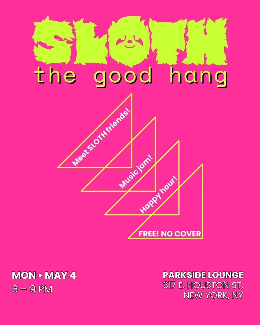 Join your SLOTH friends for an event celebrating three-and-a-half years of community building and storytelling! We’ll be at our home of Parkside Lounge on Monday, May 4 to dance, imbibe, make new friends, and dream up all the new ways we can create together.