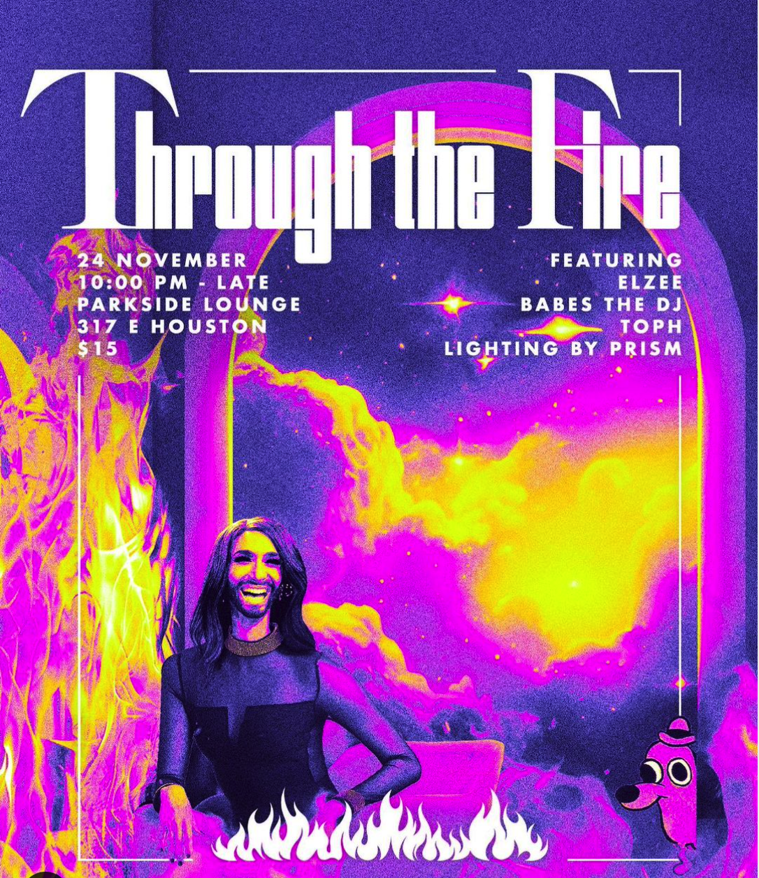 Through The Fire is a genre-agnostic dance party committed to the idea that music and dancing are mediums through which we can move through the stress of the world we live in. Held at the iconic Parkside Lounge in the Lower East Side, this party gives you the chance to discover up and coming DJs from across the NYC nightlife scene, develop community, and use the power of music to help you move through the fire, all in a queer, safe space.